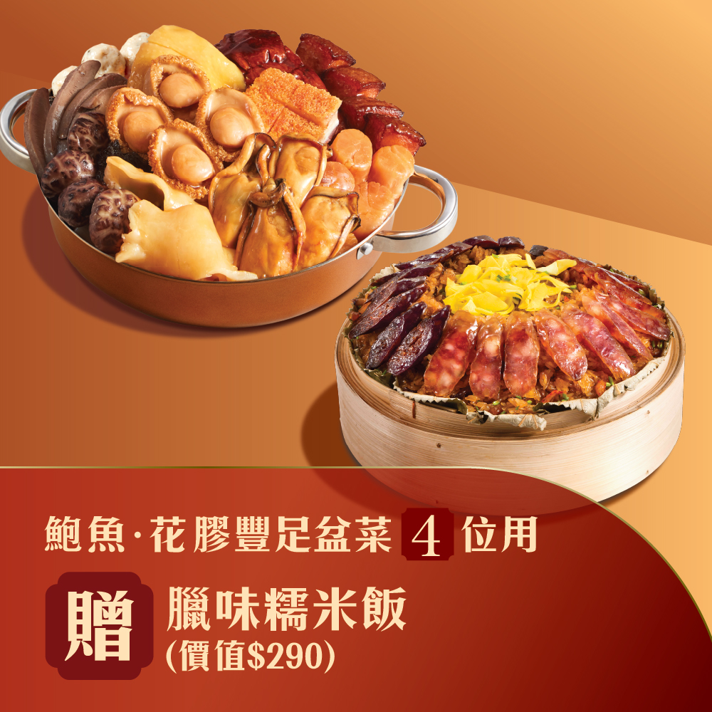 *限時優惠: 贈臘味糯米飯 (價值$290)