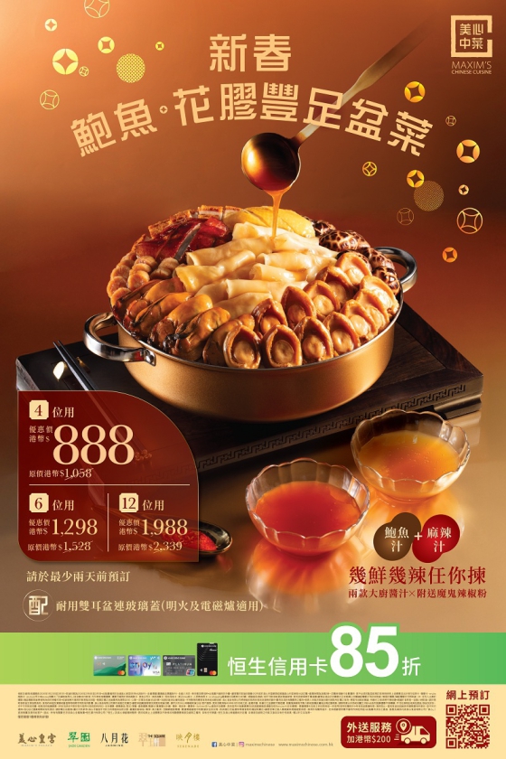 美心中菜「鮑魚‧花膠‧豐足盆菜」,與你共度佳節,讓每一刻更珍貴,更難忘。