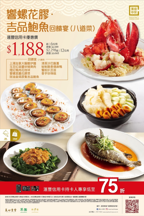 推廣分店: 全綫美心皇宮、全綫翠園(廣場飯店-翠園除外)、映月樓