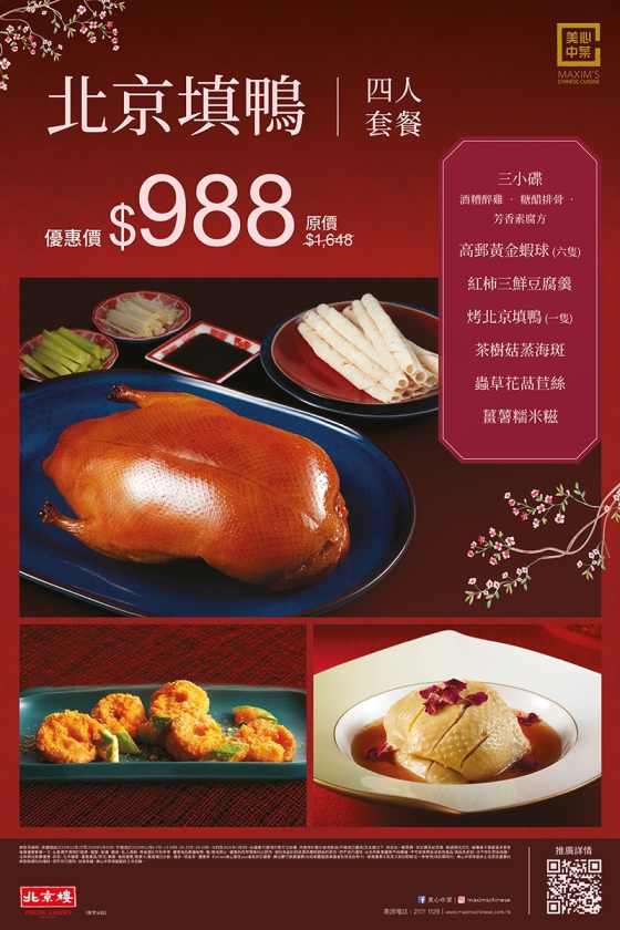 2. 每檯每次惠顧最多享用「北京填鴨4人套餐」優惠套餐一個。